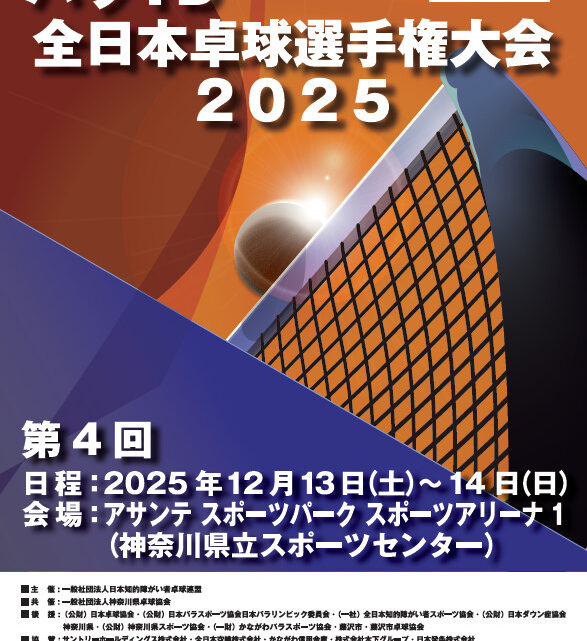 ブログ パラID全日本卓球選手権大会(神奈川県立スポーツセンター)R7.12/13(土)~12/14(日)